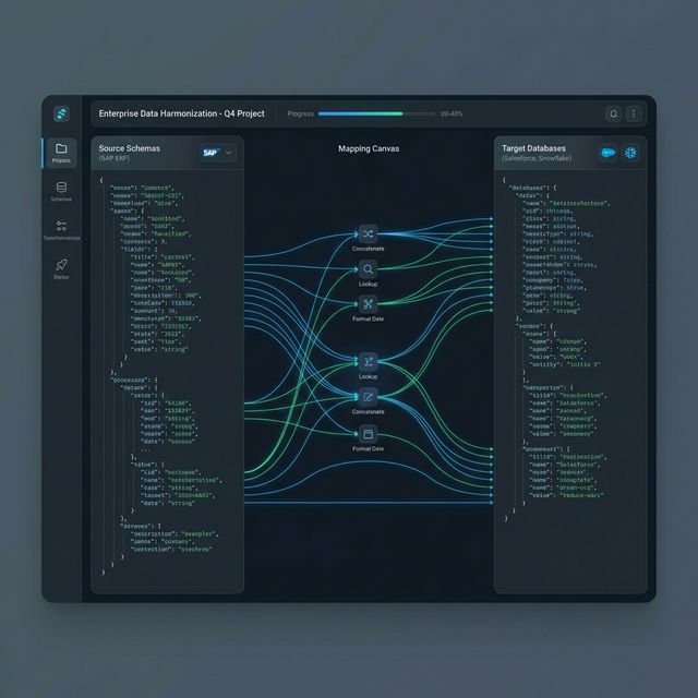 Translates data between systems with different schemas — product codes, client records, pricing structures — without building custom integrations.